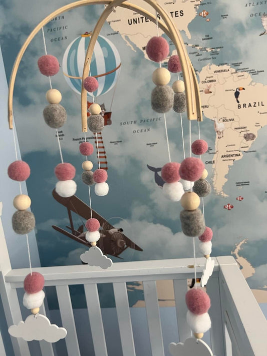 Pink Rainbow Nursery Decoration, Wall Hanging, Nursery Mobile, Cot Mobile, Crib Mobile for baby Girl