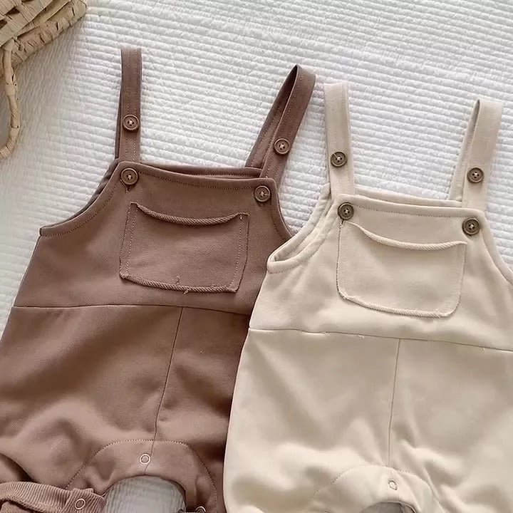 The overalls are made from the softest fabric. They feature double buttons for adjustable height and a kangaroo pocket on the front. The Snap button will make it easy to change the diapers.