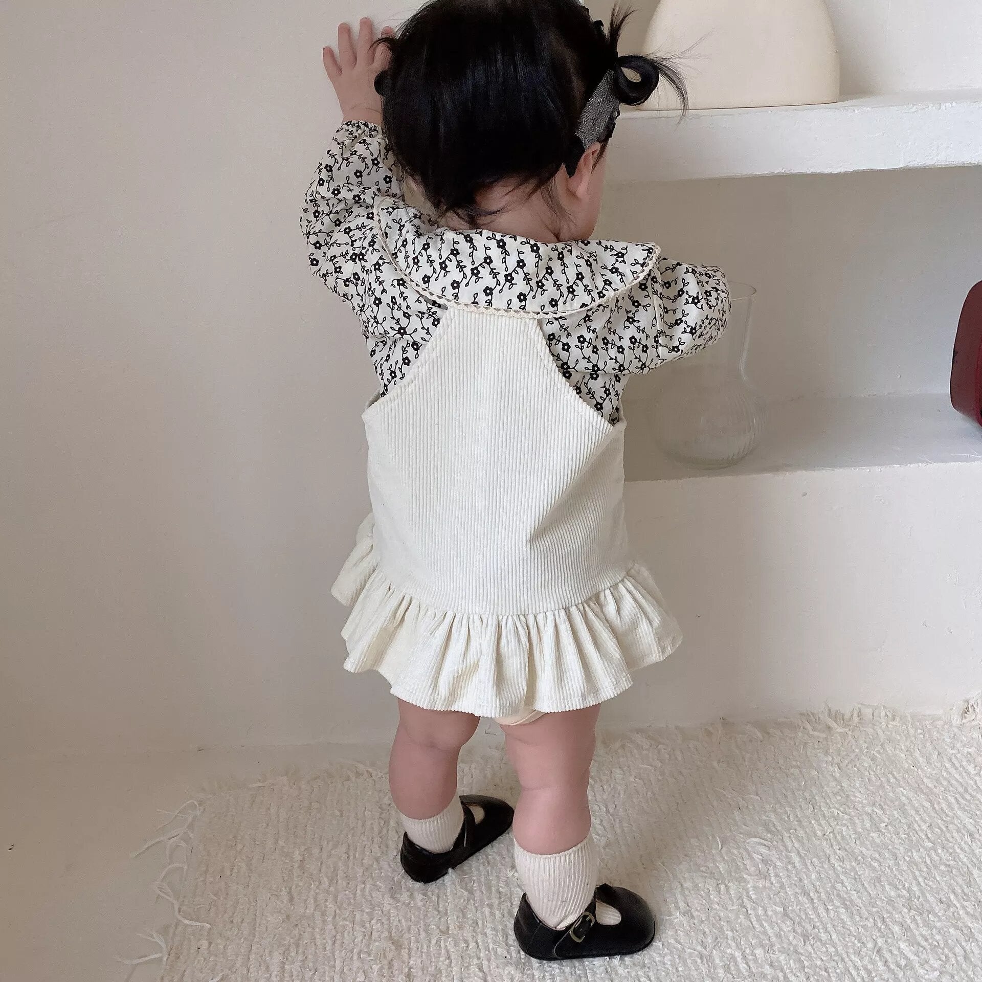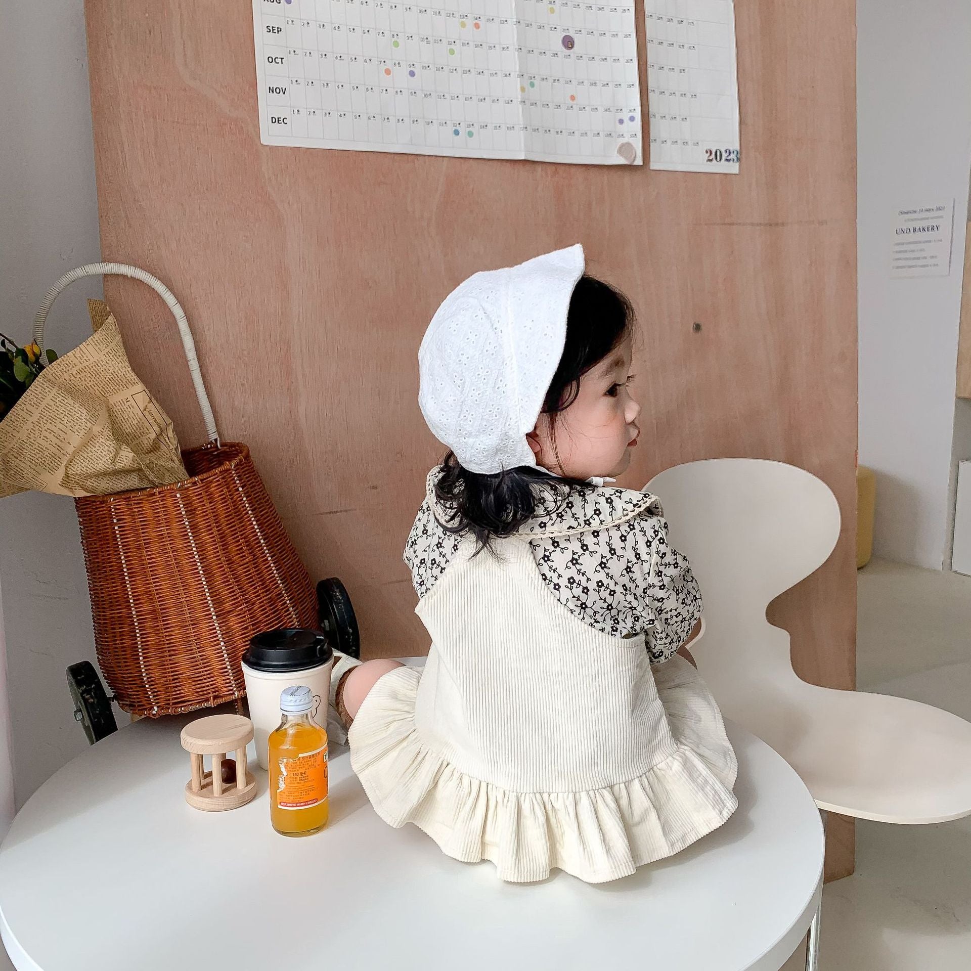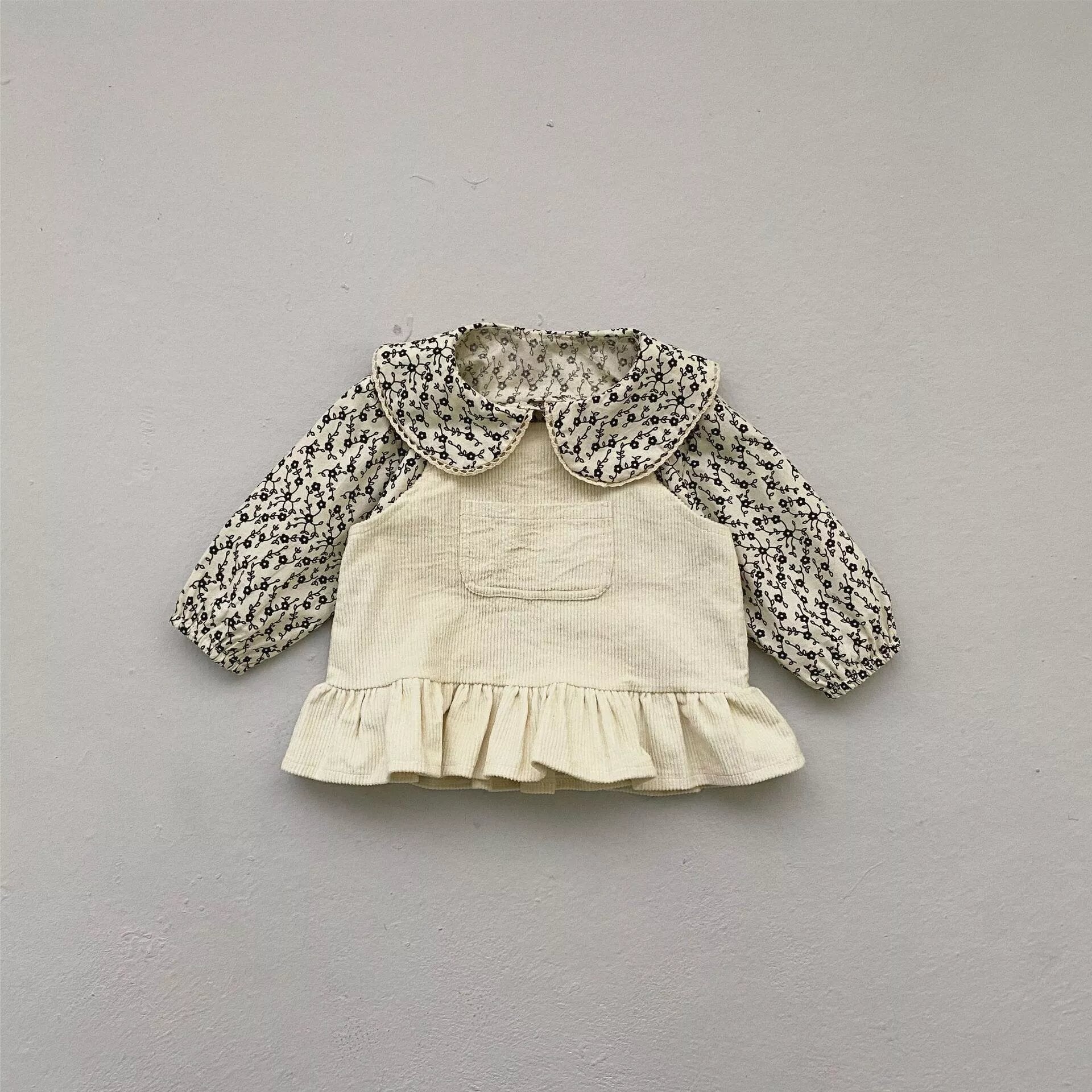 Beautiful Beige color Corduroy Overall, Skirt baby girls and Toddlers with cute small pocket. from 6 months to 3 years old.