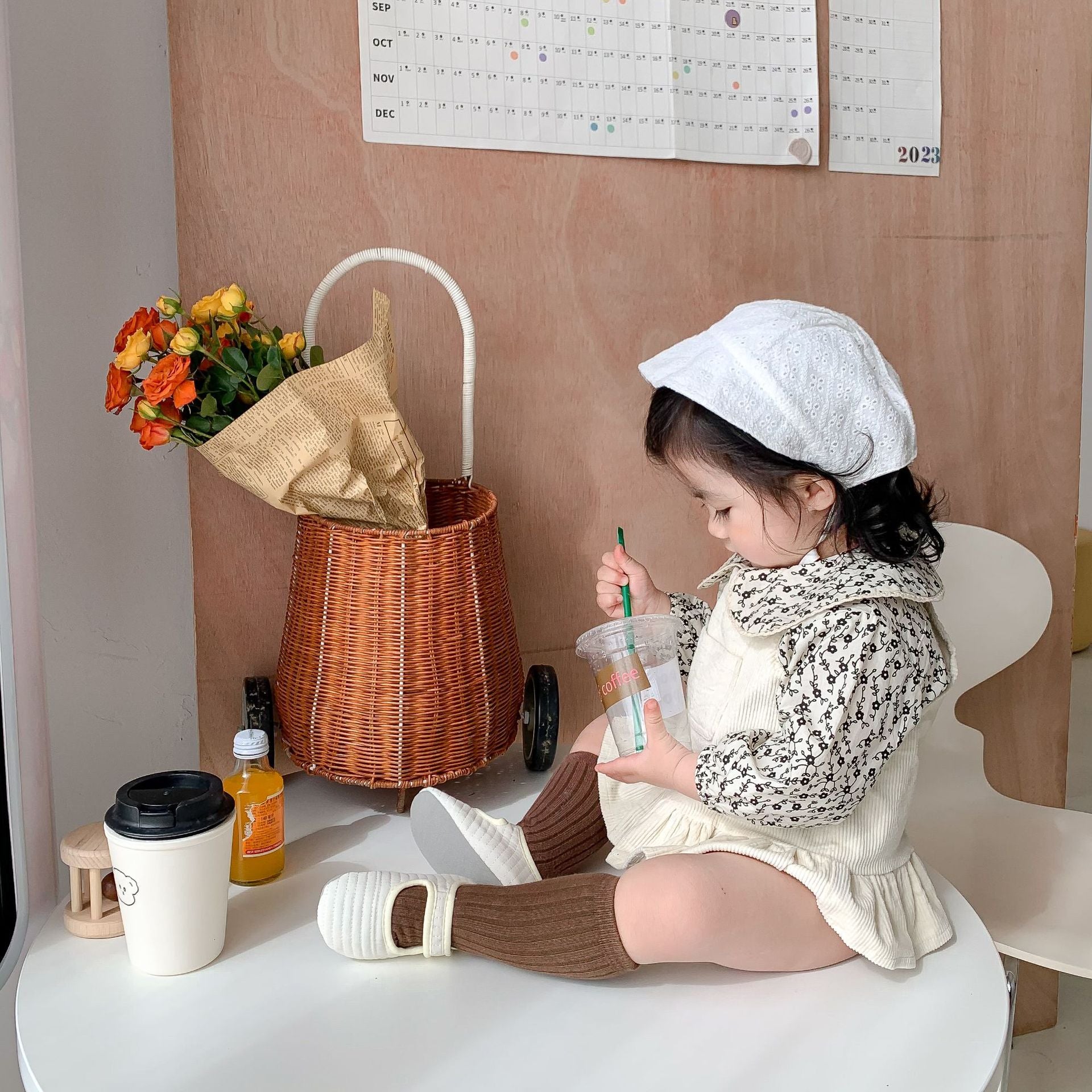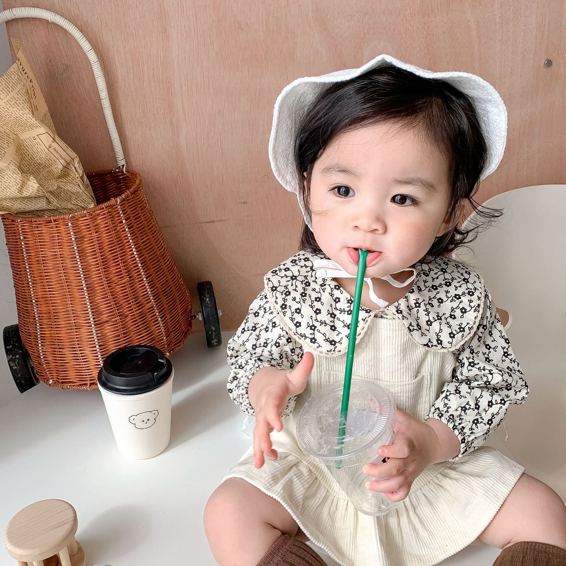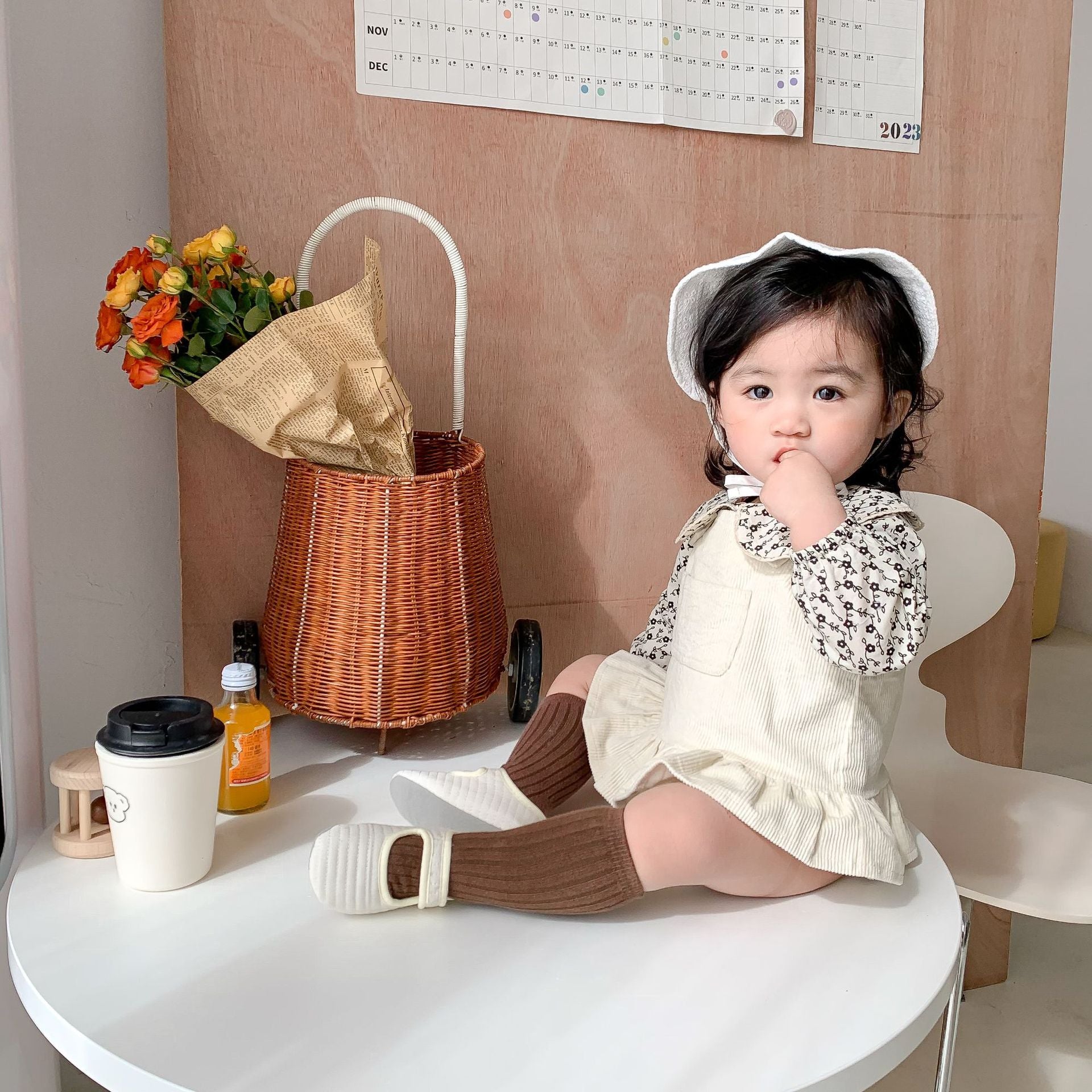 Beautiful Beige color Corduroy Overall, Skirt baby girls and Toddlers with cute small pocket. from 6 months to 3 years old.