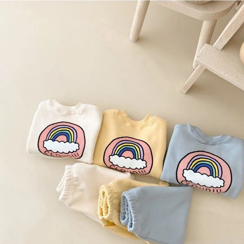 Rainbow Sweatsuit, sweatshirt and pants are super soft and cozy for your little ones.